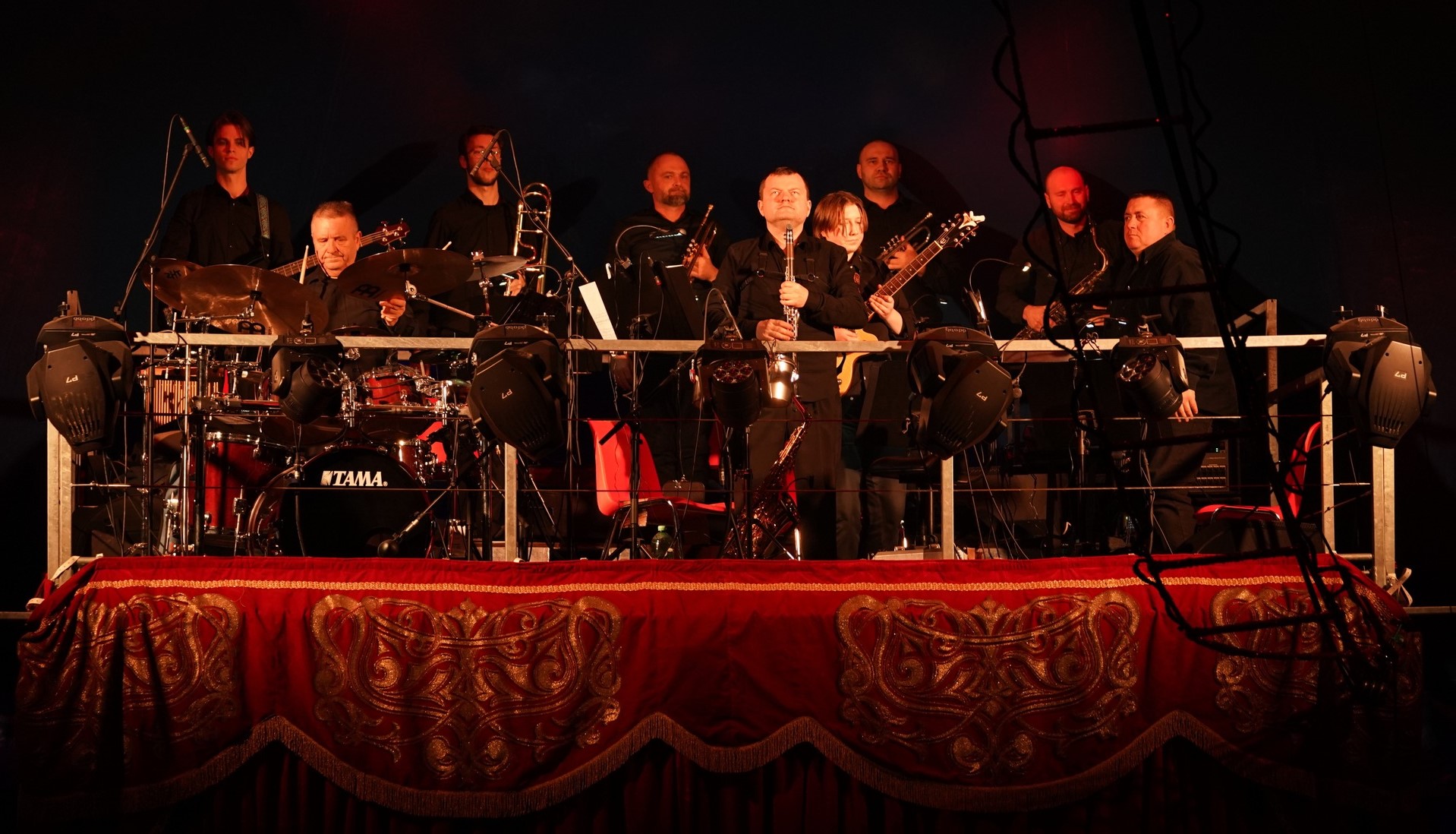 Tonangebend im zweieinhalbstündigen internationalen Weihnachts-Programm sind die Frauen und Männer hoch oben über dem Artisteneingang. Kapellmeister Roman Mariash und das Orchester des Ravensburger Weihnachtscircus fidnen immer den richtigen Ton. Denn: Der Ton macht die Musik.